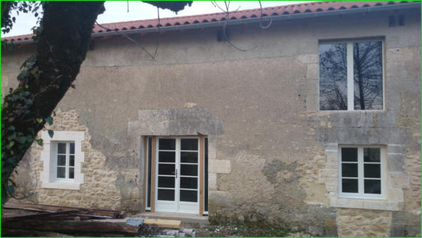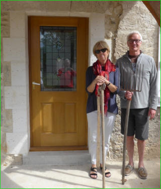 We like the “shabby chic” appearance of our Périgord house, less perfectly pointed than their Dordogne neighbours (and also cheaper). So apart from new roofs for the house and barn, 4 new French door sets and several double glazed windows, including the “chien assis” dormer windows in the attic, we left everything the same! Oh and raised the front door lintel when our tall architect friend David pointed out that he would have to bend double to come in. Lorry loads of gravel improved the look of the front and back and made us look deceptively finished. The shutters (all 20 sets of them) were painted in a factory style production line with 5 coats (yes 5) of protector/primer, undercoat and Weatherseal grey and thanks must go to Malcolm’s nephew Tom who popped out for a relaxing break, just at the right time for us (and probably wrong for him).